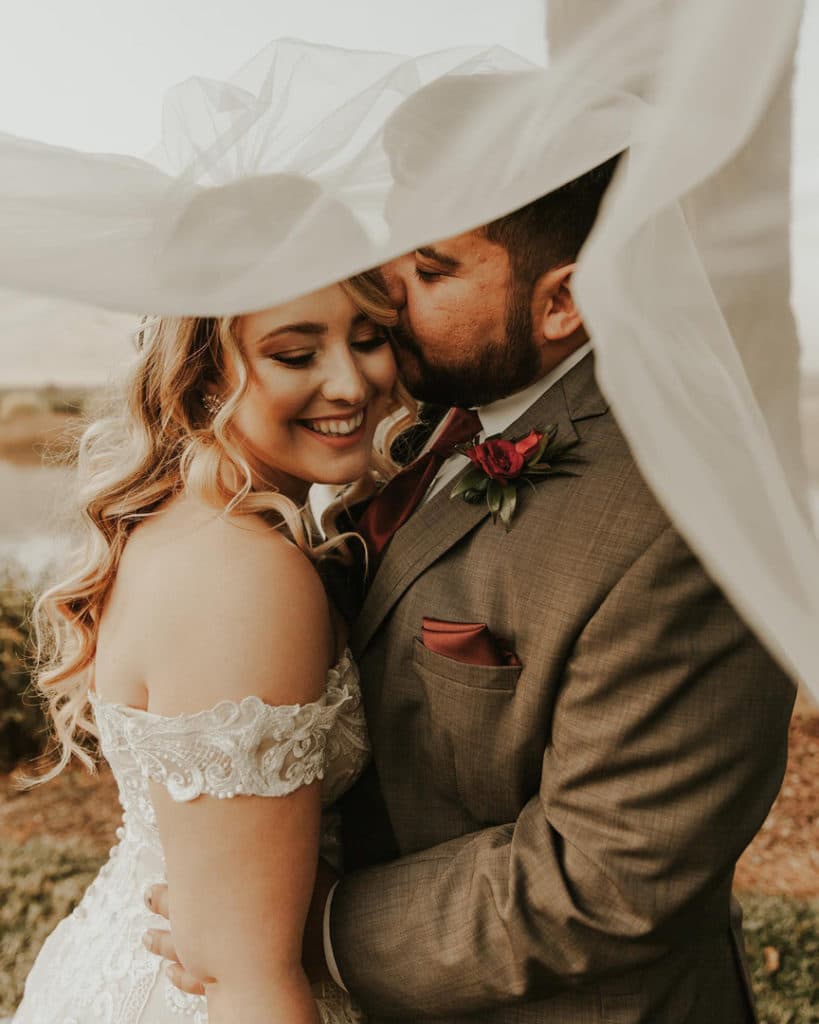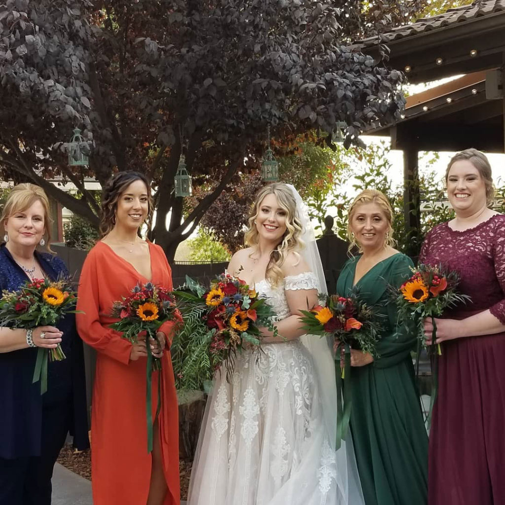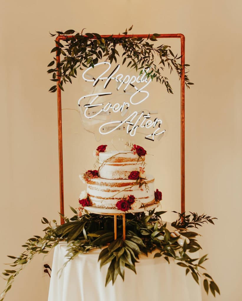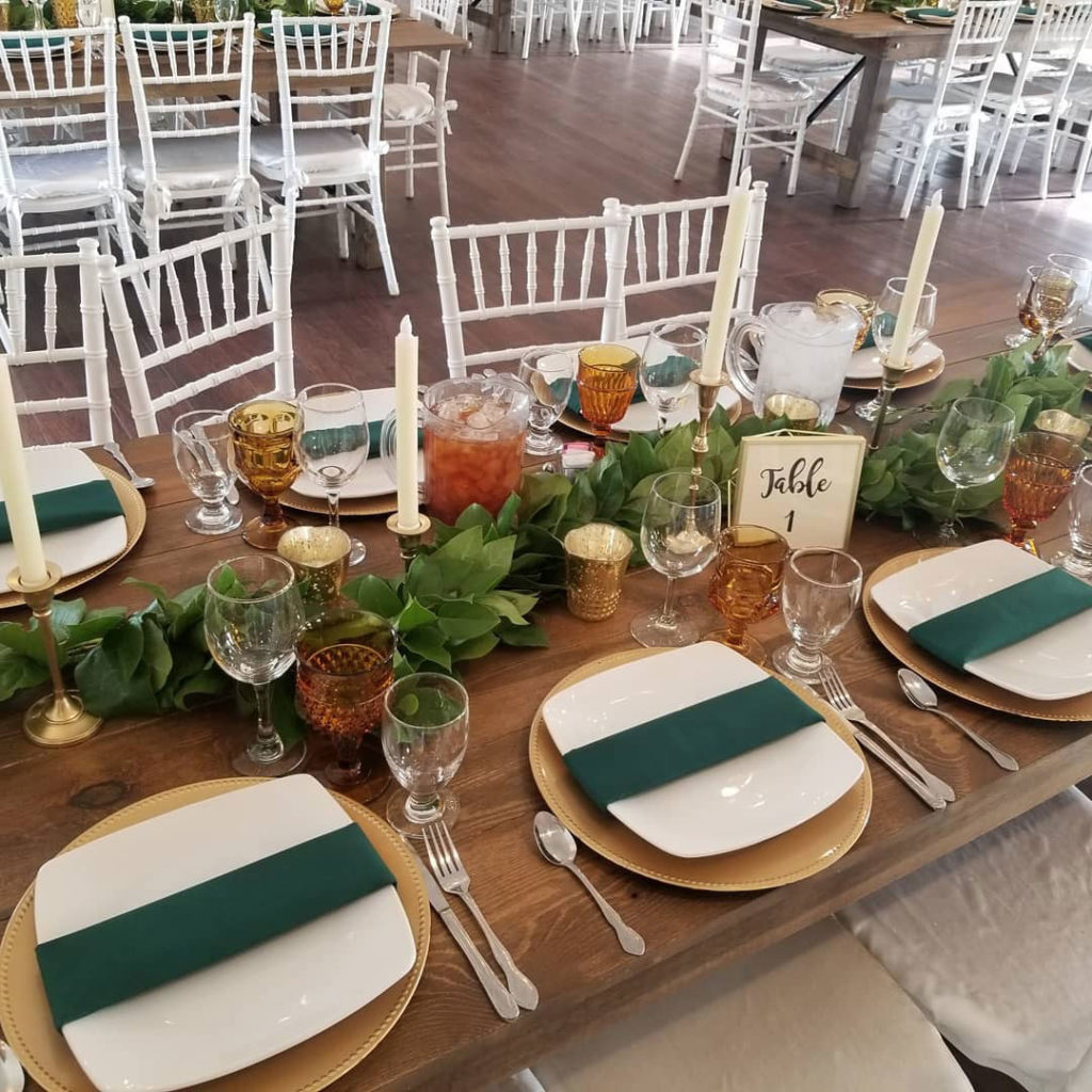 This October wedding was full of fun and trendy designs. We incorporated macramé at the ceremony by hanging it on a natural wooden arbor and then we added pampas grass along with all of the vibrant fall colors the couple chose for their wedding palate. At the reception we added macramé runners to the sweet heart farm table which complimented the green velvet chairs perfectly. The bride chose amber goblets for all of the guest tables and also added a copper stand with our “Happily Ever After” neon sign. It was the perfect fall evening! Congratulations Alyssa and Paul!!