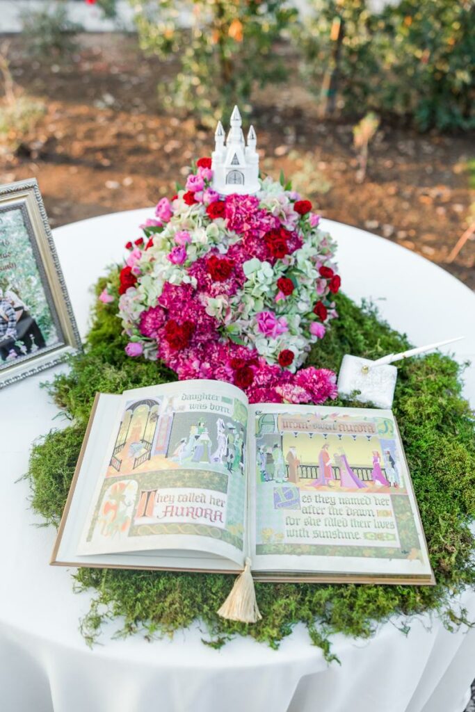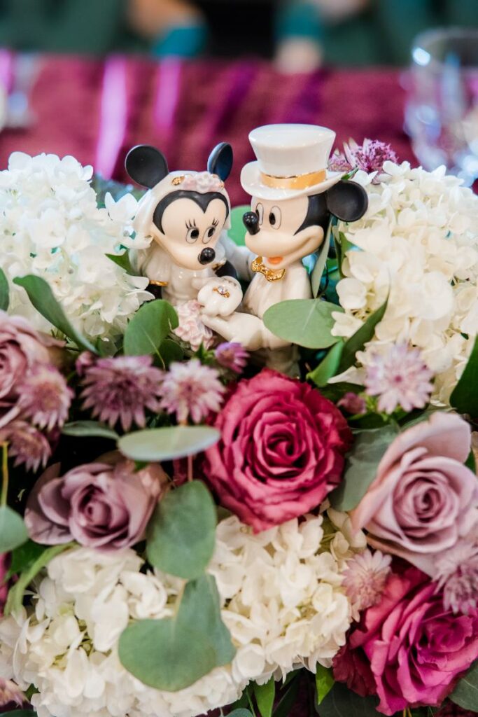 Jessica and Josh are both Disney fans and they were sure they wanted to incorporate their favorite Disney stories and characters into their wedding décor. As fellow Disney fans, we here at Hidden Hollow were eager to help! When you look through their photo gallery you might see a few familiar characters like Sleeping Beauty, Mickey and Minnie Mouse, and Flora, Fauna, and Merryweather! One of our favorite things we created together was the Guest Book floral “mountain” that had a winding path leading to the iconic Sleeping Beauty castle. Jessica and Josh were a joy to collaborate with and their day was a beautiful, magical, romantic one. Cheers to Happily Ever After!!!
