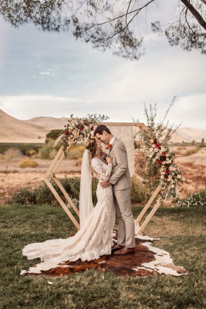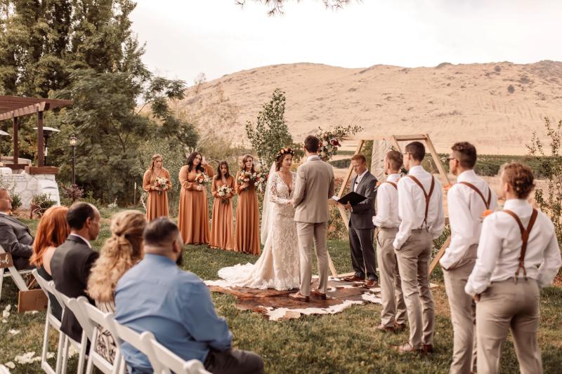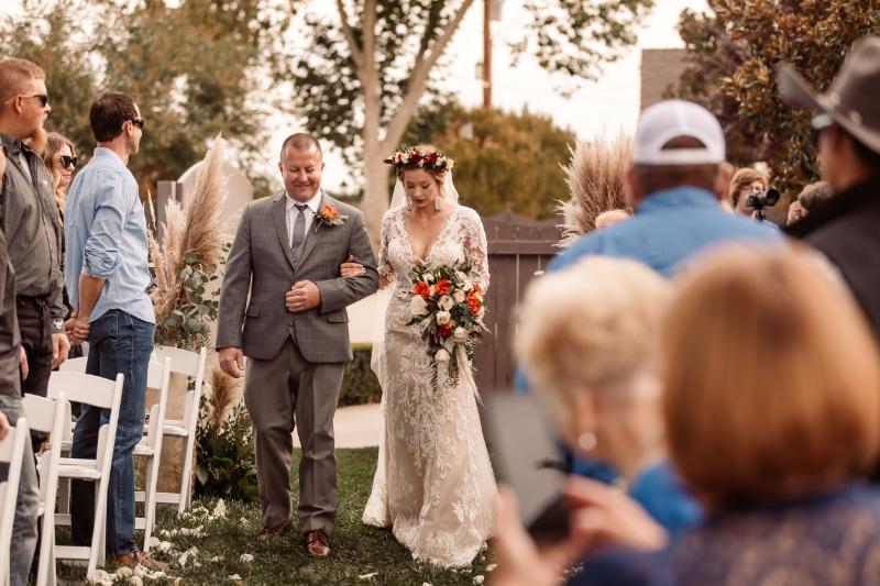 Kaitlyn and Austin had a very clear vision of how they wanted their wedding to look. They had already selected the perfect fall color palette, shopped, and found the perfect rustic boho accents, which made it so easy to collaborate with them at their floral consultation here at Hidden Hollow! A touch of pampas grass, lots of soft greenery, terra cotta, and orange florals, and of course, their awesome rug and macrame made it all come together effortlessly! These photos speak for themselves. I mean, they nailed it!! Congratulations to Kaitlyn and Austin!