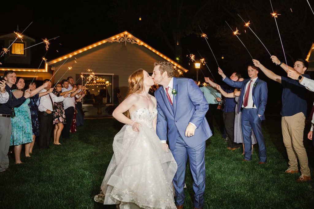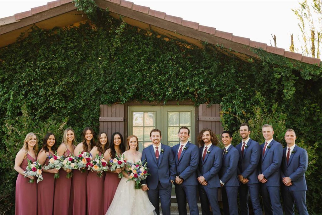 Rayna & Clint were married in Spring of 2019 here at Hidden Hollow. They wanted their ceremony floral to have a natural feel as though a garden had grown over time in colors that complimented their wedding. Hidden Hollow floral team installed faux branches that climbed up the sides of our wooden ceremony arch and crossed to create the feel of a previously planted flowering trellis vine. We were able to find a rose called “Blueberry” which was an exact match to the bridesmaid’s gowns. We carried their garden feel in to The Grand Ballroom with the use of wood elements from farm tables, wooden lanterns, wooden table numbers, and lots of fresh floral. Their photographer, Matrimony Media, worked tirelessly from day to night to capture every moment including their romantic sparkler exit! Congratulations to Rayna and Clint!!